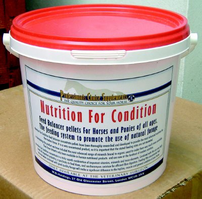 Volwassen paarden afhankelijk van schofthoogte, tot 120 cm 40 gr., tot 140 cm 60 gr., tot 160 cm 80 gr., boven de 160 cm 100 gr. per dag.